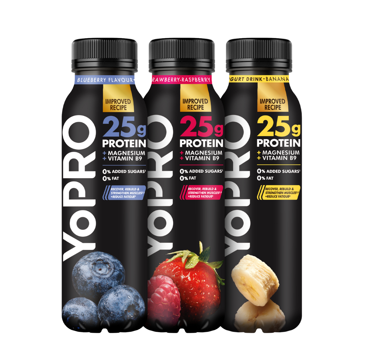 1. Vores YoPRO drikkeyogurtsprodukter indeholder 25 g protein per servering.