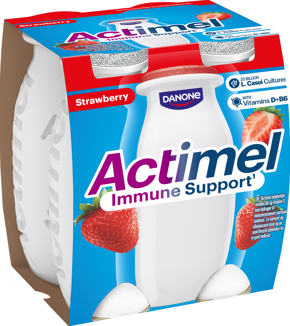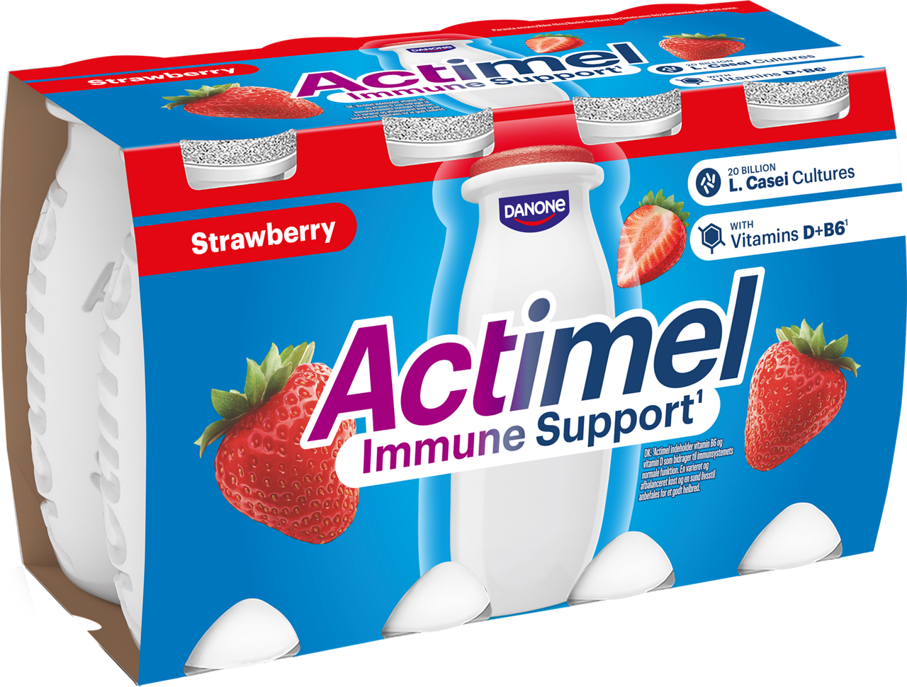 Ingredienser: pastรถriserad MรLK, sukker, jordbรฆr 9,5%, MรLKproteiner, modifierad stivelse, sort gulerodkoncentrat, fortykningsmiddel (pektiner), juicekoncentrat (citron, gulerod), naturliga aromer, MรLKmineraler, yoghurtkultur, Bifidobacterium lactis (ACTIREGULARISยฎ).