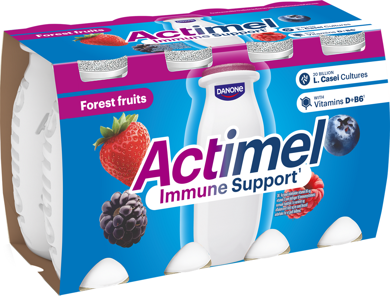 Drikkeyoghurt med blรฅbรฆrsmag fra Activia indeholder ikke kun 4 milliarder levende bifidobakterier men er ogsรฅ en lรฆkker og frisk yoghurtdrik med en smag af blรฅbรฆr.
